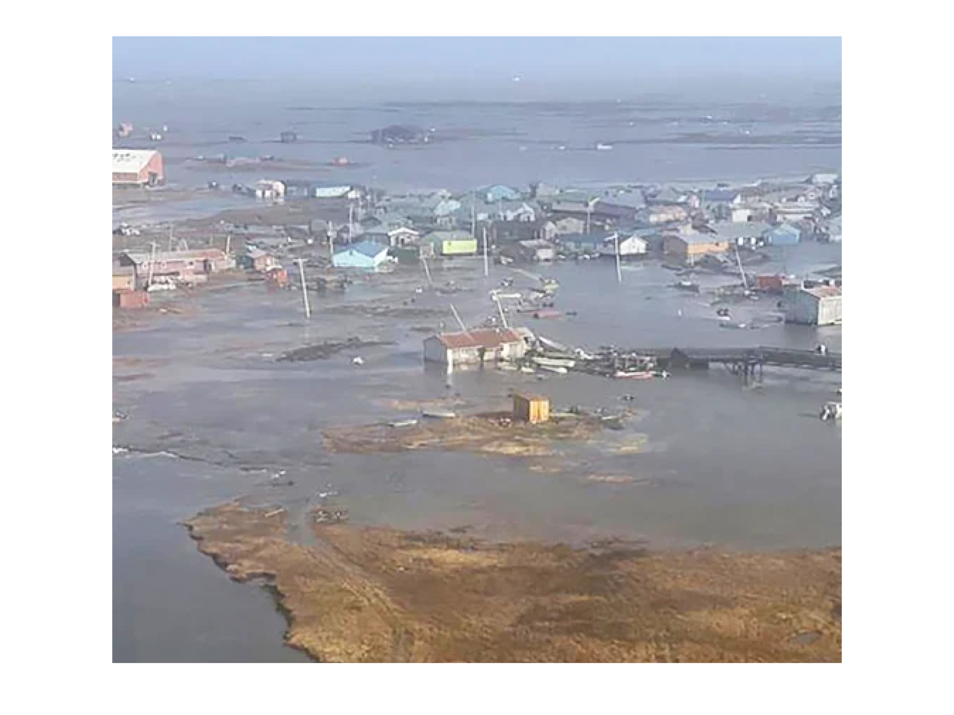 On October 12, 2025, climate change induced Typhoon Halong hit the west coast of Alaska, with major damage in the communities of Kipnuk, Kwigillingok, and Napakiak. These communities are remote and isolated, with no roads in or out. Halong brought devasting winds and flooding, which caused homes to float away and completely wiped out the communities’ infrastructure. Kipnuk and Kwigillingnok had to evacuate, which meant waiting for military planes to take them to another small community of Bethel and then many travelled on to Anchorage, bringing with them only what they could carry and forcing them to say goodbye to the communities they call home.